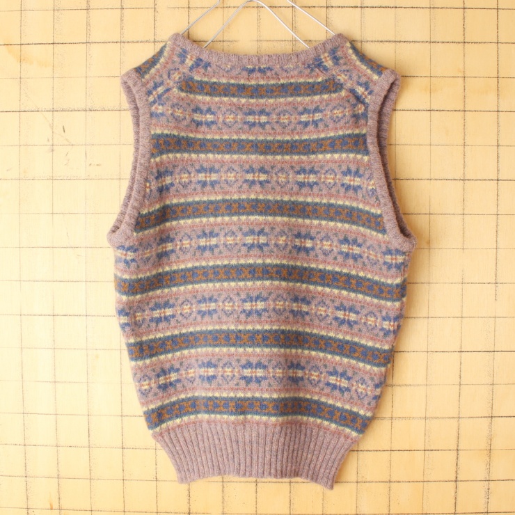 70s 80s USA IZOD LACOSTE ラコステ 総柄 ウール ベスト Vネック ベージュ レディースL アメリカ古着です。