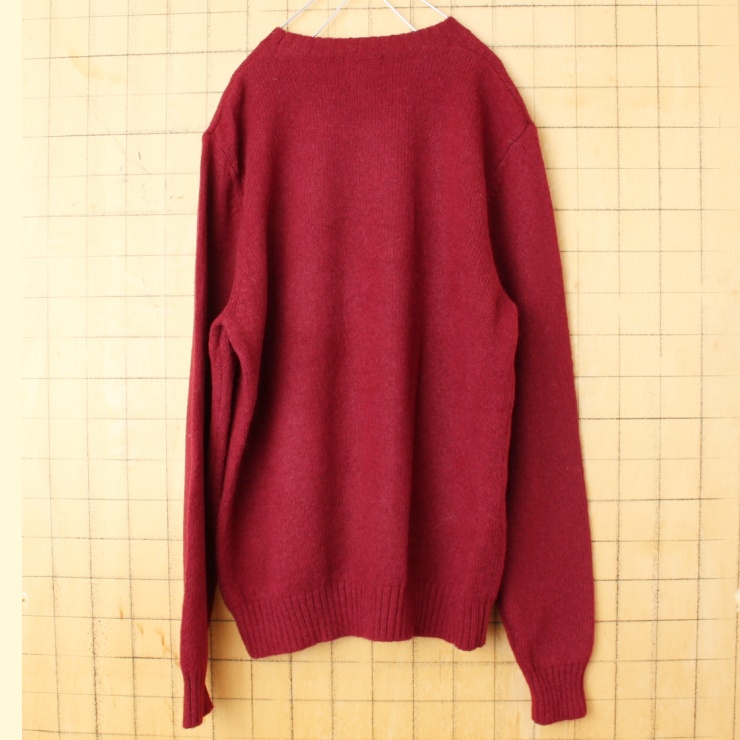USA LLBean エルエルビーン シェットランド ウール ニット セーター ボルドー レッド メンズM アメリカ古着です。