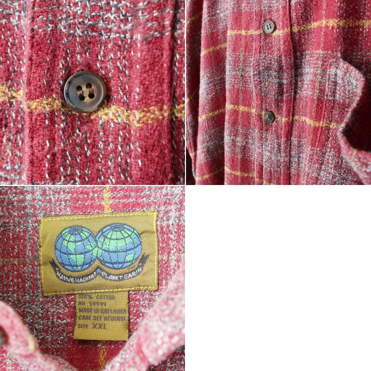 ビッグサイズ 80s 90s USA NATIVE HABITAT PLANET EARTH ヘビーフランネル チェック シャツ レッド メンズXXL 長袖 アメリカ古着です。