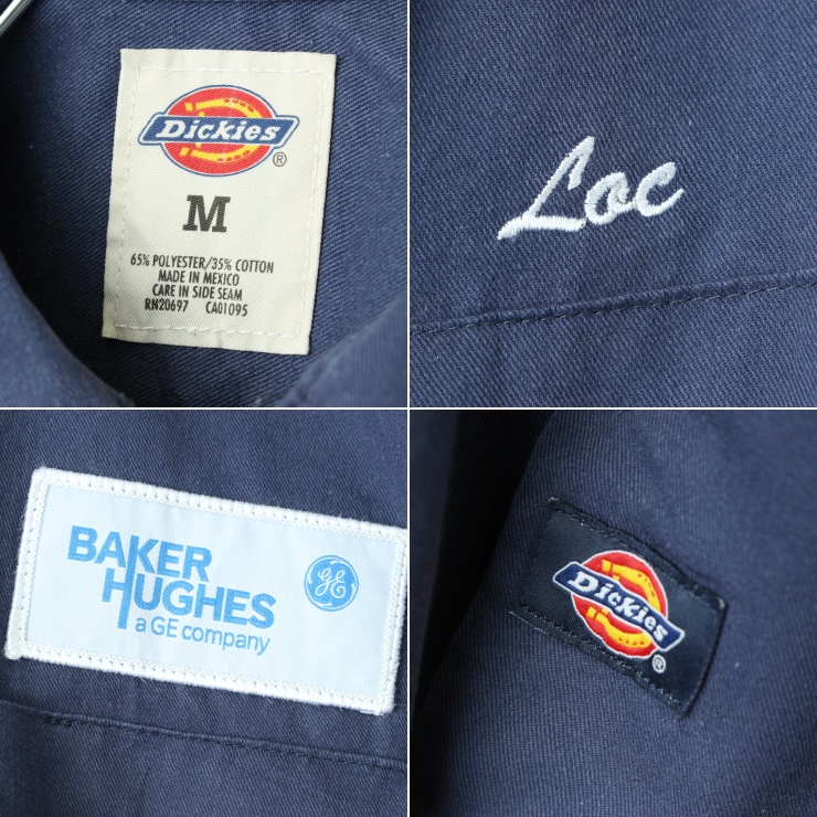 90s 00s USA Dickies ディッキーズ ワッペン ワーク シャツ ネイビー ブルー メンズM 半袖 アメリカ古着です。