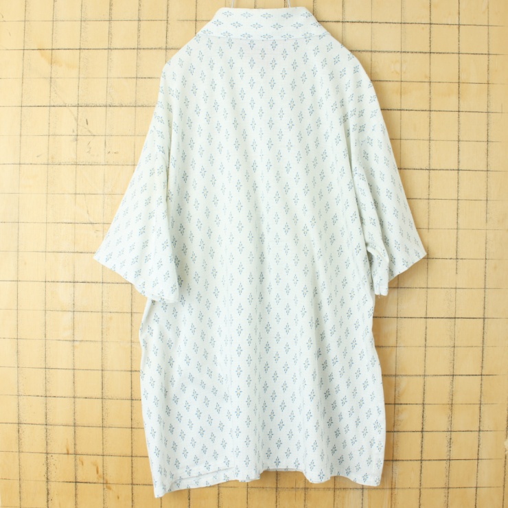 60s 70s USA JCPenney 半袖 ライトフランネル 総柄 ボックス シャツ ブルー ホワイト メンズXL アメリカ古着