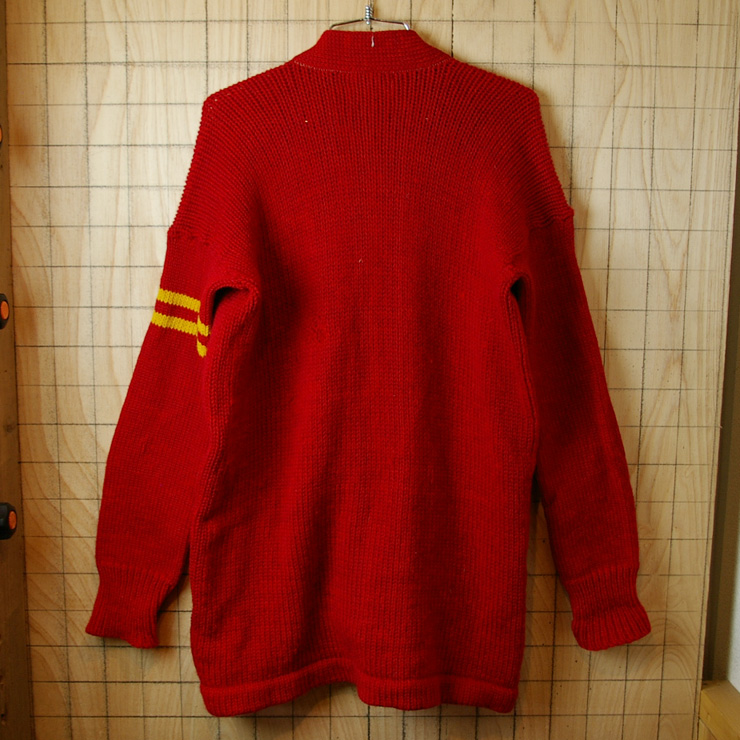 【Phoenix Sweater Mills】USA(アメリカ)製1940's古着レッド(赤)ウール100%ニットレタードカーディガンサイズM~L相当【フェニックスセーターミルズ】です。