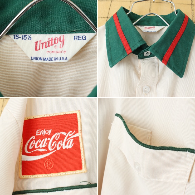 70s 80s USA製 Unitog コカコーラ ワーク シャツ ベージュ メンズML相当 ワッペン 長袖 Coca-Cola アメリカ古着 sy-l-296
