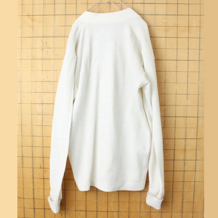 80s USA製 Dehen MATCO TOOLS レタード カーディガン ホワイト メンズL相当 ワッペン ニット アメリカ古着です。