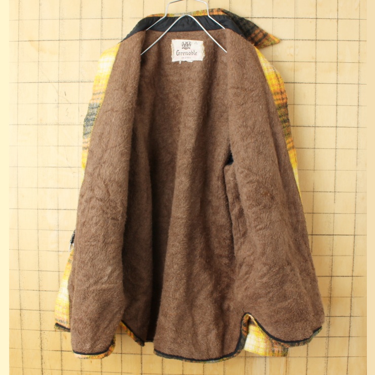 70s 80s USA Grenoble ウール チェック CPO ジャケット メンズM ボアライナー イエロー アウトドア アメリカ古着です。
