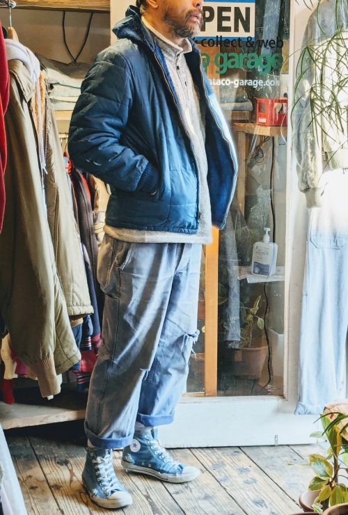ボディはサラサラとしたナイロン生地と肌触りの良いボアフリースのリバーシブル、カラーはネイビー。