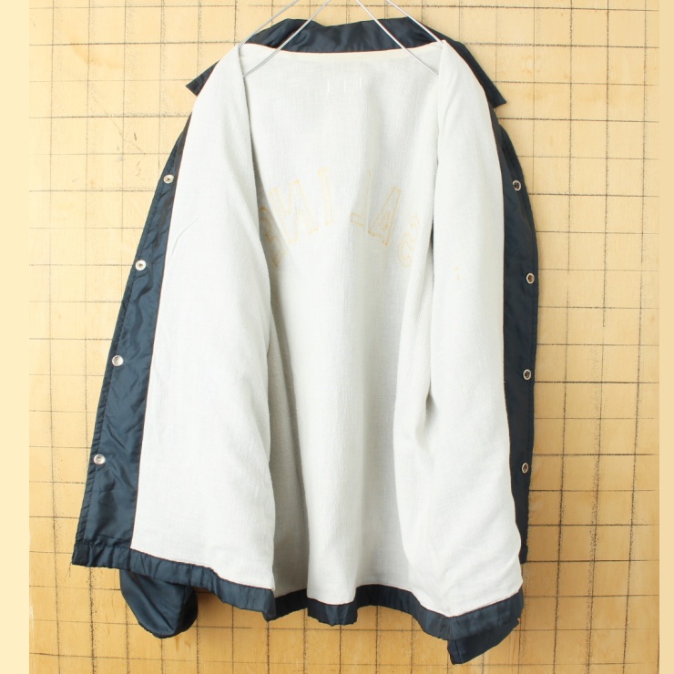 70s 80s USA製 SALINE ワッペン コーチ ジャケット メンズL相当 ネイビー ライナー付き アメリカ古着