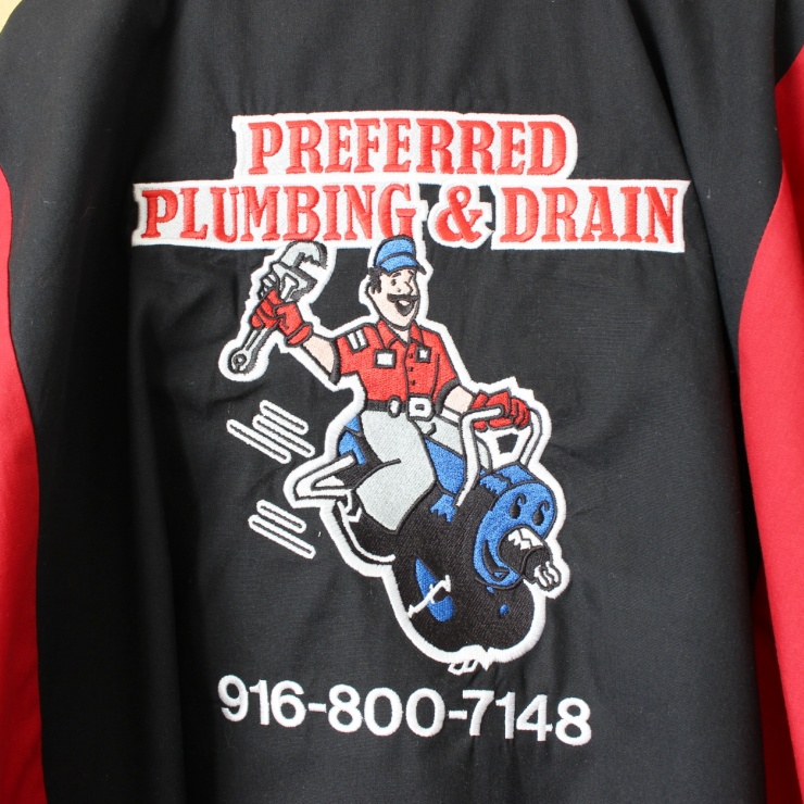 フロントとバックにアメリカの配管会社PREFERRED PLUMBING & DRAINの刺繍が入っています。