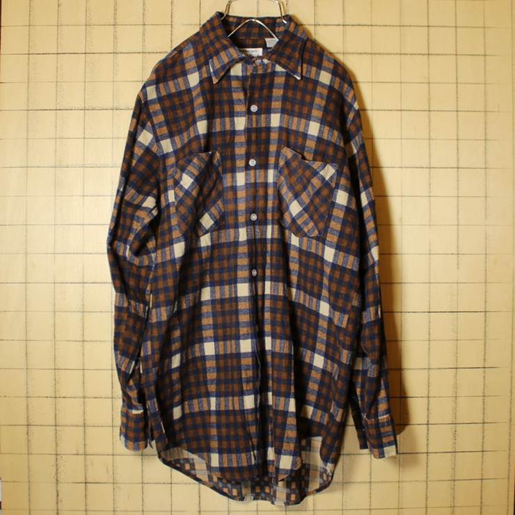 Levis 70s 古着 チェック 長袖 シャツ ブラウン …