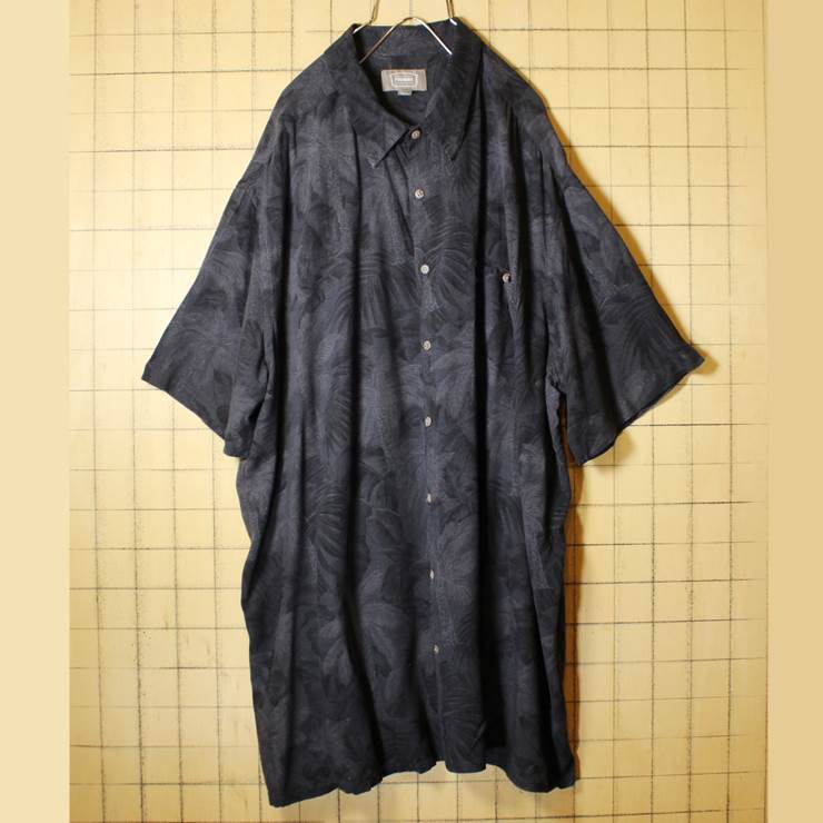 総柄 半袖 コットン アロハ シャツ ブラック メンズXXL…