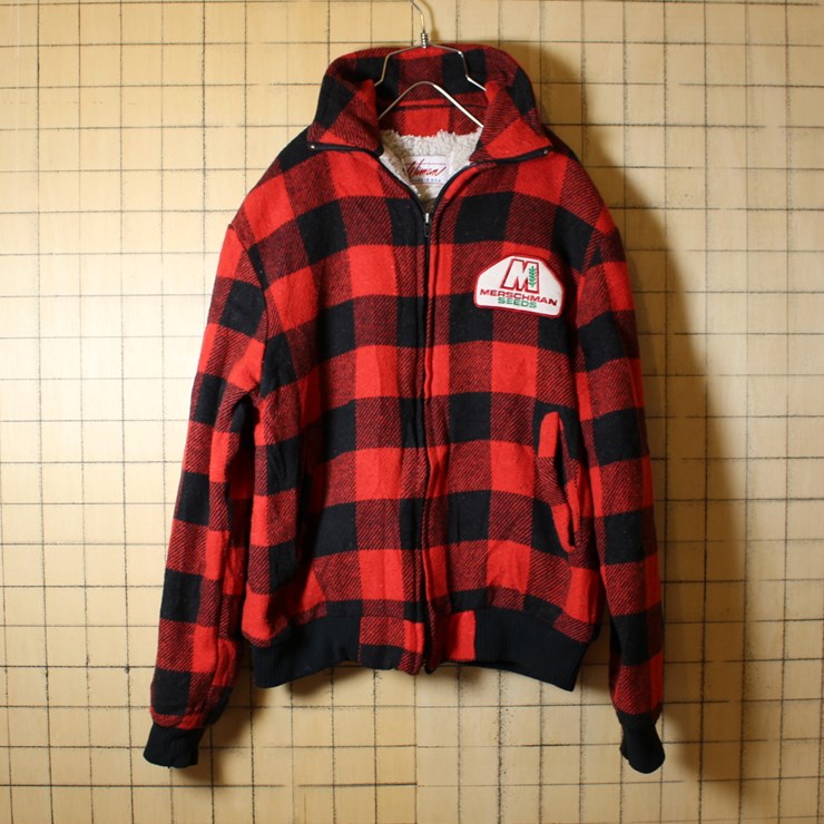 USA製 古着 Wiman チェック 裏ボア ウール ジャケ…