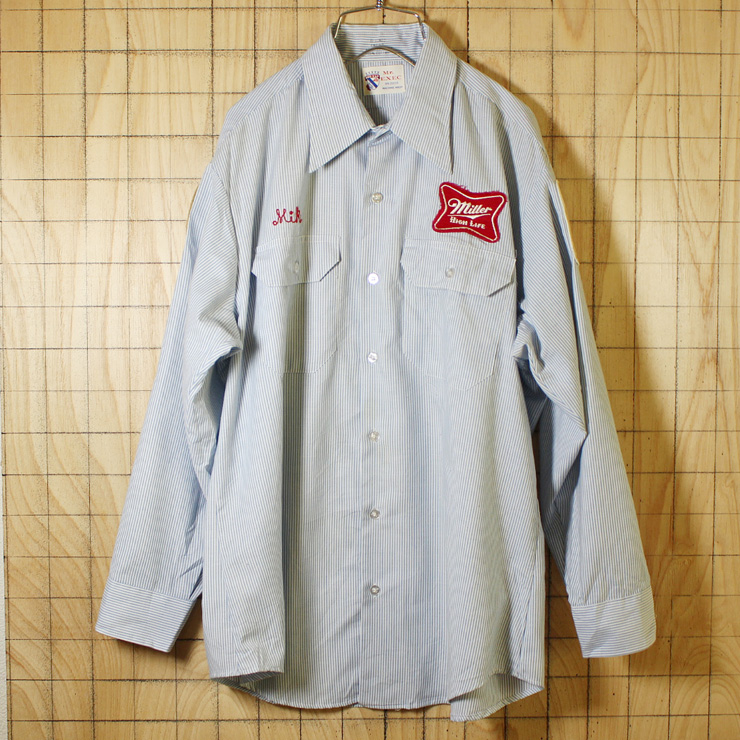 Miller,Lite Beerのワッペン付アメリカ製長袖ワークシャツです。